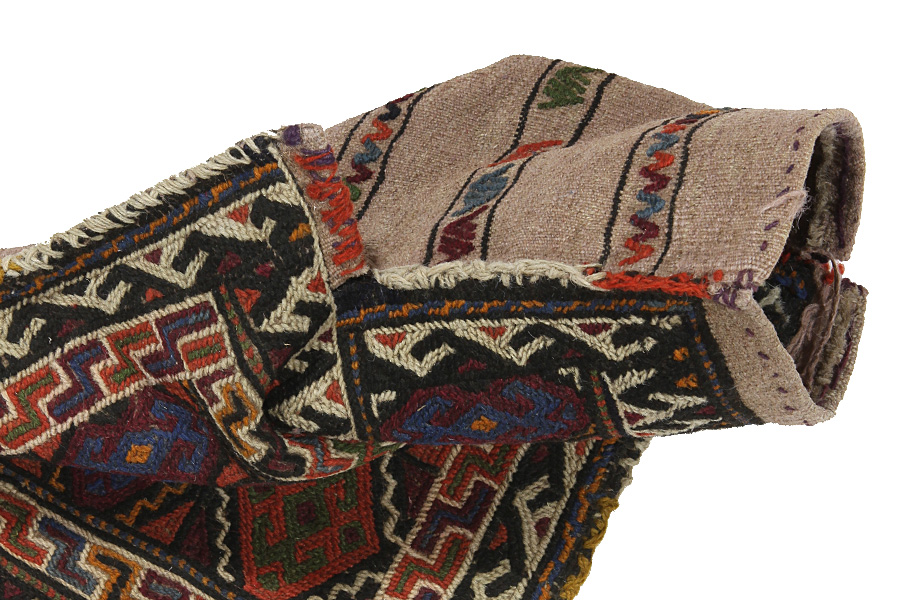 Horse saddle bags are made by Nomads for their own use. One can distinguish between the kilim-horse saddle bags and the knotted horse saddle bags. The front side of a knotted horse saddle bag is either knotted like a common carpet with knots or different mixed techniques are used. The side parts are often woven whereas in the middle part different weaving techniques such as kelim or Soumak are applied. The colors horse bags are dyed with are all natural and made by the Nomads themselves. Bags like these once carried everyday necessities for travelers on donkeys or horses. A delightful piece of art that provides a unique oriental atmosphere to your home. Horse saddle bags can be used as a seat cushion, as a floor cushion eg in front of your fireplace or as a wall decoration. Smaller horse saddle bags can be used as a newspaper holder to store newspapers or magazines when slung over a chair or sofa.