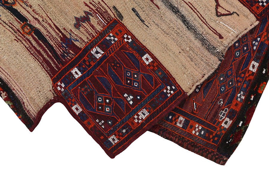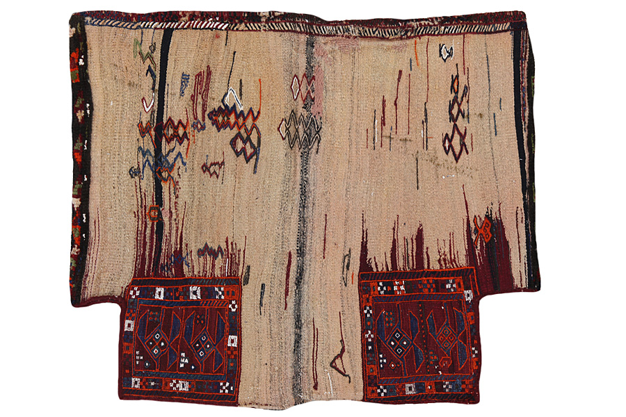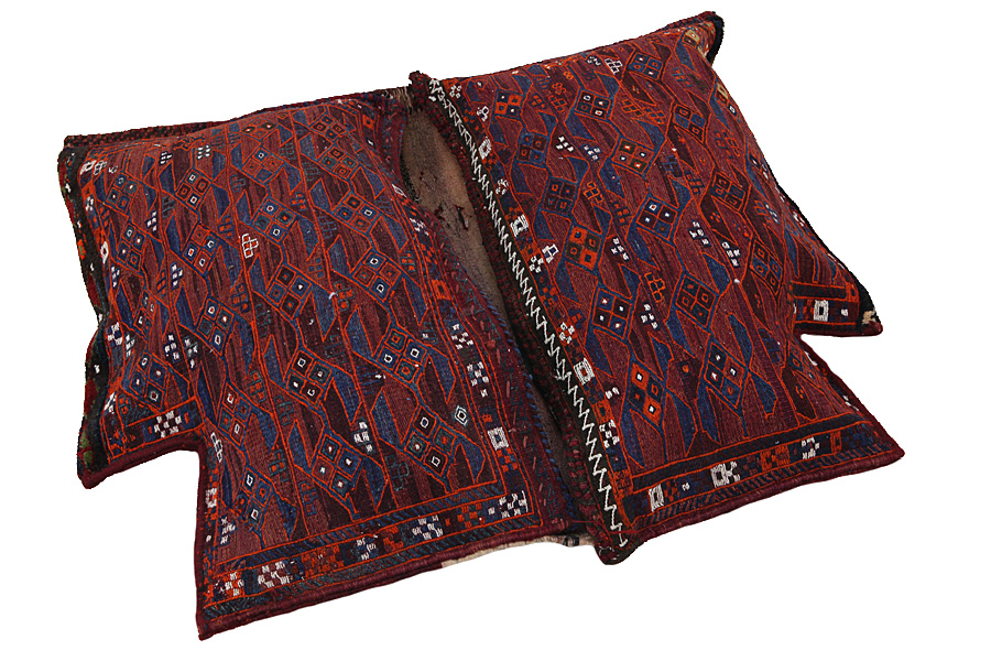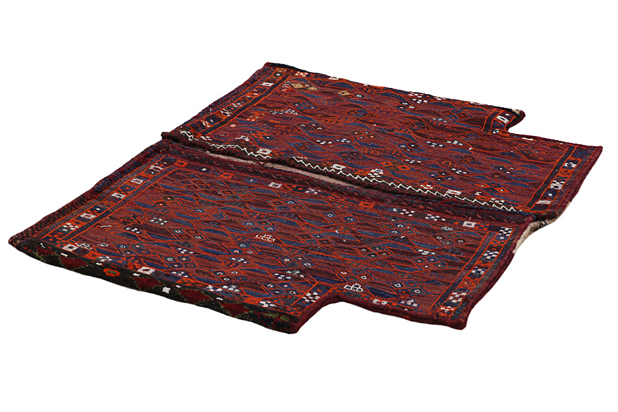Horse saddle bags are made by Nomads for their own use. One can distinguish between the kilim-horse saddle bags and the knotted horse saddle bags. The front side of a knotted horse saddle bag is either knotted like a common carpet with knots or different mixed techniques are used. The side parts are often woven whereas in the middle part different weaving techniques such as kelim or Soumak are applied. The colors horse bags are dyed with are all natural and made by the Nomads themselves. Bags like these once carried everyday necessities for travelers on donkeys or horses. A delightful piece of art that provides a unique oriental atmosphere to your home. Horse saddle bags can be used as a seat cushion, as a floor cushion eg in front of your fireplace or as a wall decoration. Smaller horse saddle bags can be used as a newspaper holder to store newspapers or magazines when slung over a chair or sofa.